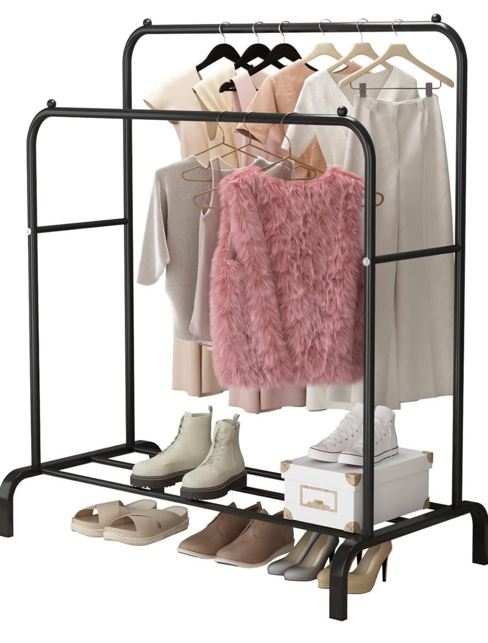 Garment Rack Freestanding Hanger Double Rods